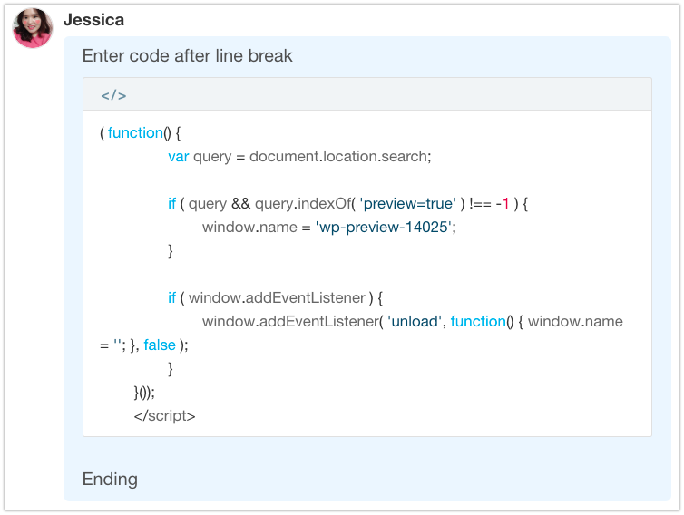 A code block is used by developers to share programming languages such as Html. However, you can create blocks between messages to highlight the content or template of notifications, even if it is not fundamentally a development code.