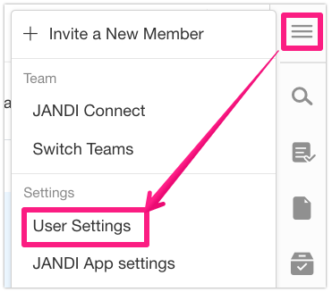 - Go to the top right corner of JANDI and click [≡] – [User Settings].