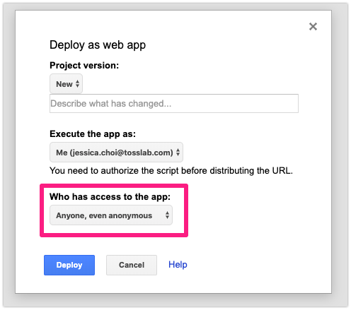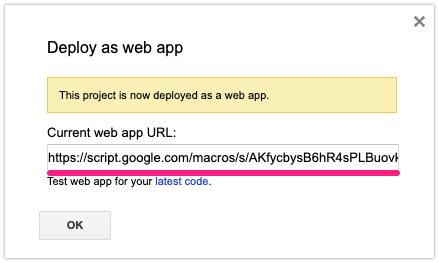 When the deployment is done, your own Current web app URL is ready. This is the Outgoing Webhook URL for JANDI Connect.