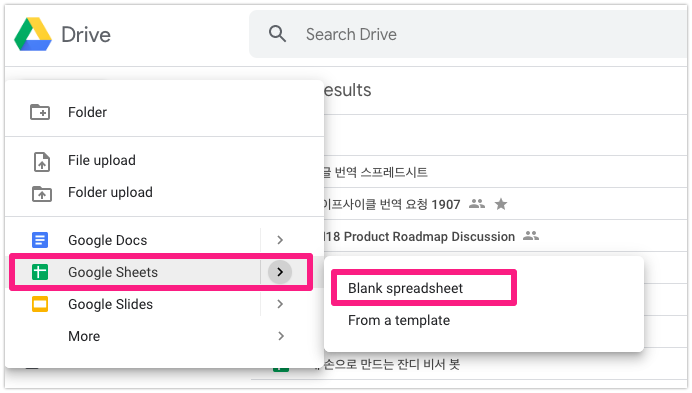 Go to Google Drive – Google Sheets – Create a blank spreadsheet.