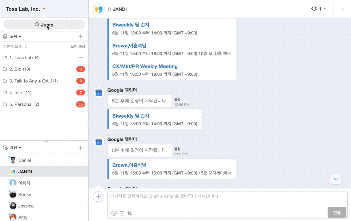- JUMP 기능을 통해 토픽 간 빠르게 이동해보세요. 단축키 Ctrl + J (Mac : Cmd + J)