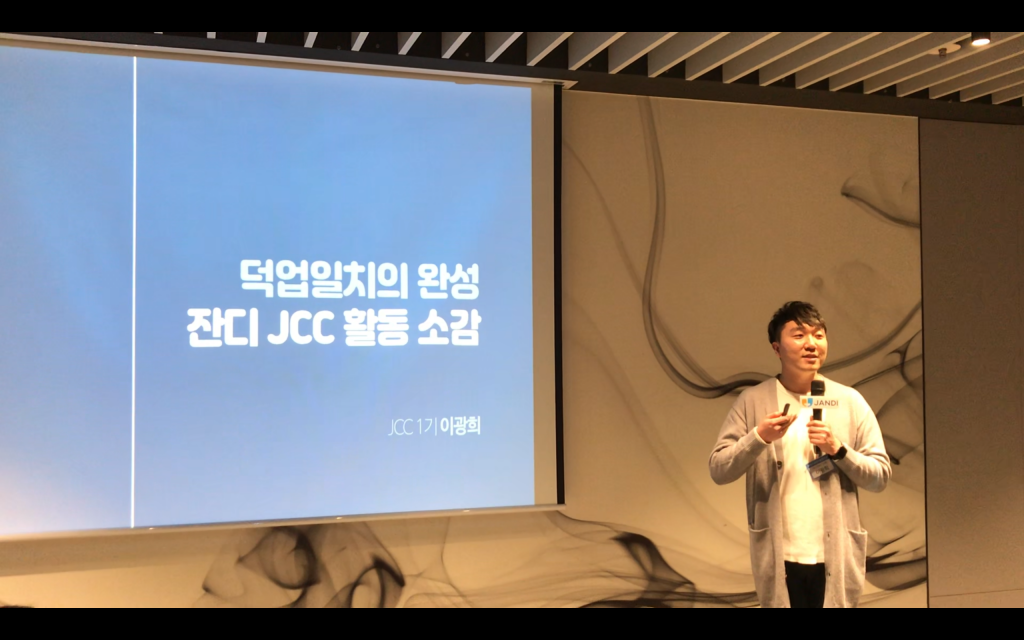 JCC에 지원하게 된 계기, JCC 활동 내용, JCC 활동을 설명해주셨어요. JCC 활동을 통해 개인의 발전 뿐만 아니라 직업의 발전까지 이루어내셨어요!