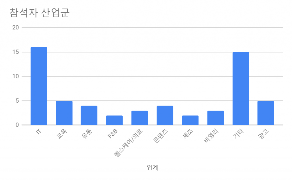잔디 유저 밋업에는 다양한 산업군의 유저들이 참석해주셨어요. 산업별 활용 사례를 공유하기 위해 비슷한 산업끼리 그룹 토의를 진행했답니다.