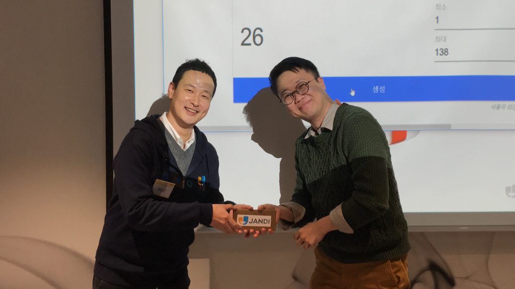 잔디 유저 밋업의 경품은 “100만원 상당의 잔디 크레딧”과 “카카오미니C”였으며, 공정하게 제비뽑기를 통해 추첨했답니다.