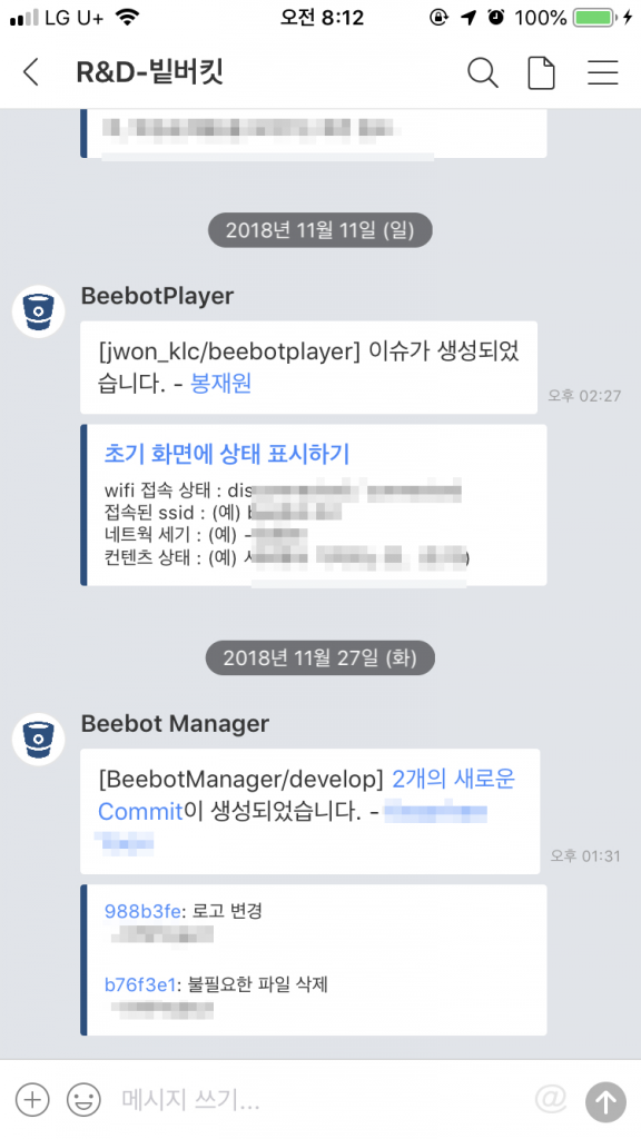 코리아런드리는 예전에 네이트온으로 커뮤니케이션했습니다. 네이트온의 한계는 팀룸이 생기긴 했지만 작은 회사에서는 프로젝트 베이스로 움직이다 보면 대부분의 멤버가 업무를 함께 합니다. 게다가 네이트온은 주제가 아니라 사람으로 밖에 묶지 못하죠. A 업무도 A 그룹과 대화하고 B 업무도 A 그룹과 대화하죠. 또한 데이터 보관도 안되고 검색도 어렵고, 했던 대화 또 하고… 대화방이 지저분해졌습니다.