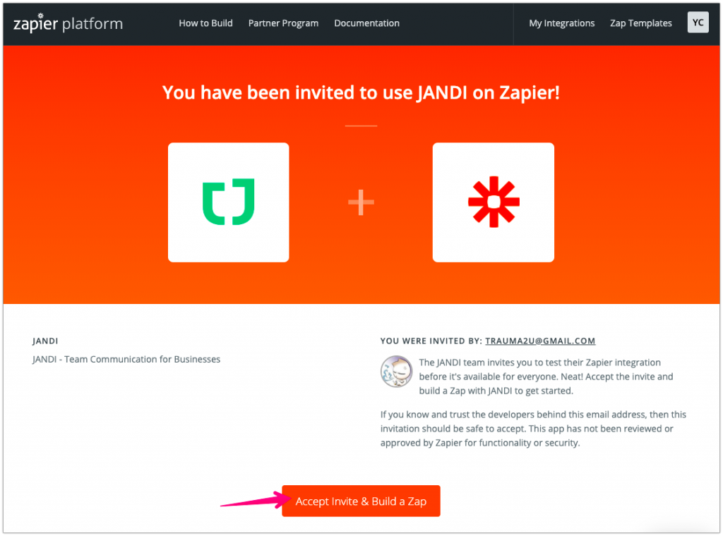 2. Zapier에서 JANDI 베타테스터 등록하기