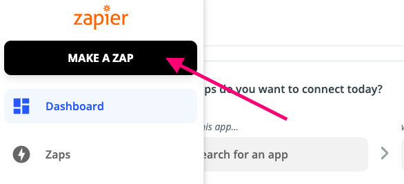 3-1. 지메일과 잔디 커넥트 웹훅을 연결하기 위해 재피어(Zapier)에 들어갑니다. 베타테스터 링크로 로그인 후, 메인 화면 상단의 [Make A Zap!] 버튼을 클릭합니다.