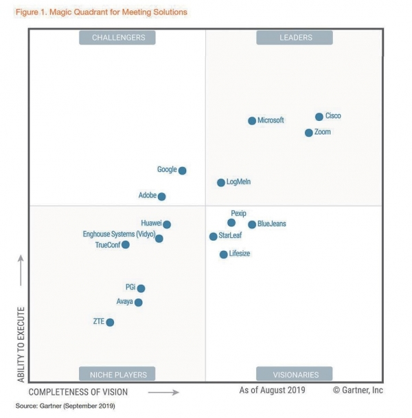 Gartner Magic Quadrant의 원격근무 평가 그래프(2019). 원격근무 솔루션을 도입 시 참고할 만하다.