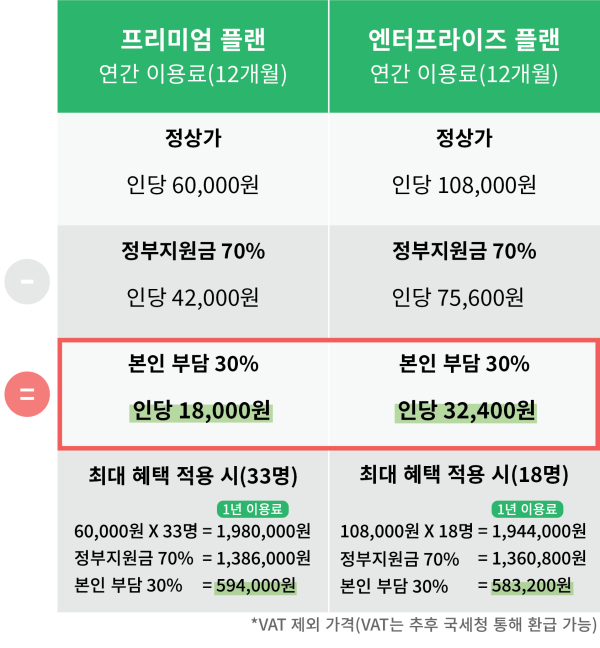 잔디는 연간 사용료 200만원이 초과하는 50인 이상 사업장의 경우에도 비대면 서비스 바우처 사업에 준하는 혜택을 전달 드리고자합니다. 별도로 문의하시면 상담을 통해 추가 혜택을 안내해 드리겠습니다.