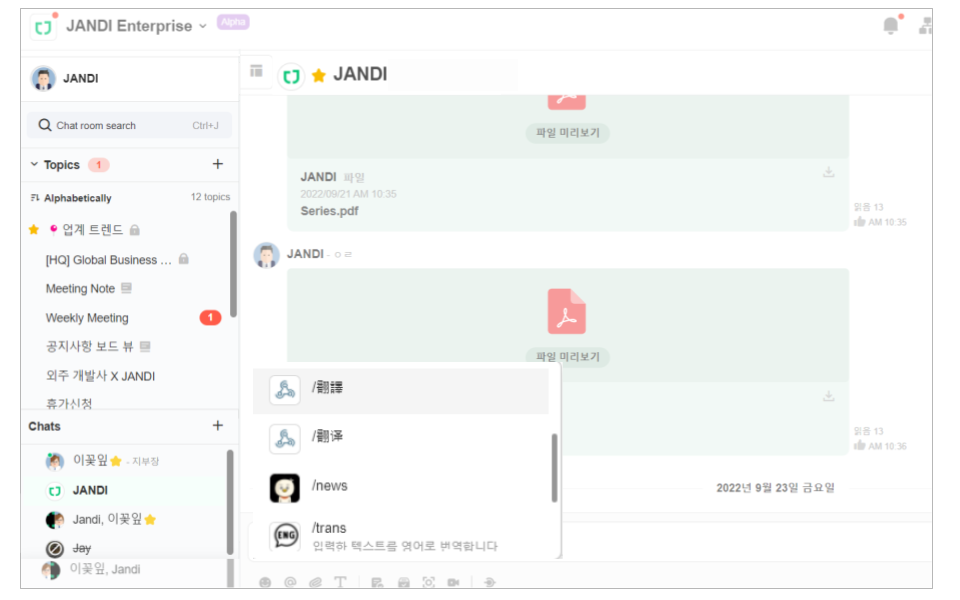 JANDI will continue to update new features for our users. If you have a feature request, don’t hesitate to get in touch with us at [Live Support] in the JANDI menu!