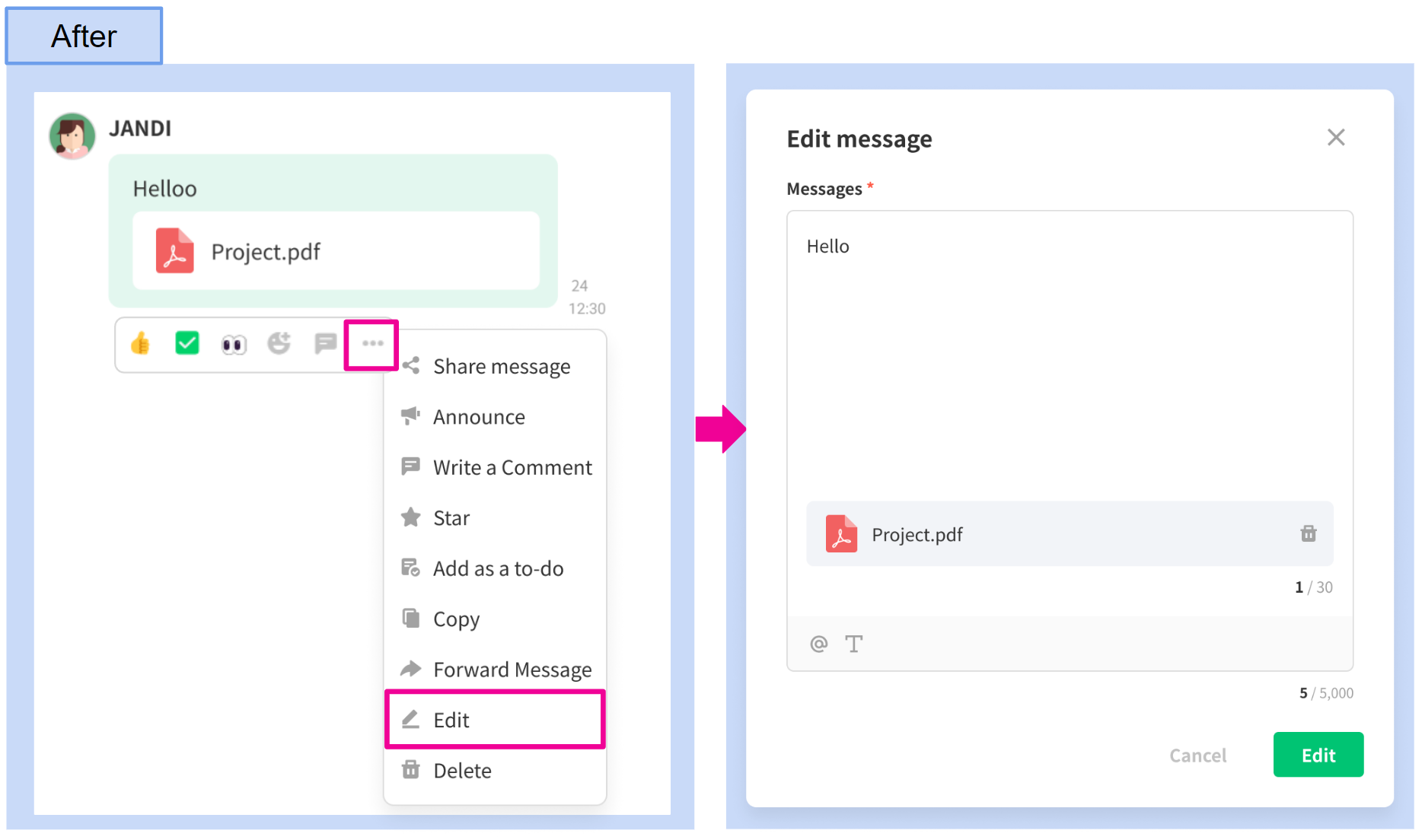 Now, you can edit messages to correct typos and delete files.