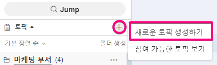 토픽은 팀 멤버 누구나 생성할 수 있습니다. 이번 글에서는 새로운 토픽을 만들고 공개/비공개 토픽으로 설정하는 방법에 대해서 알아보겠습니다.