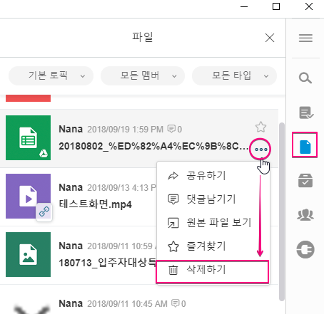 파일이 삭제된 기록은 계속 남아 있어 차후 자료를 요청할 때 담당자를 파악하기 용이하답니다. 파일을 삭제하는 방법은 아래 방법을 따라 해주세요.