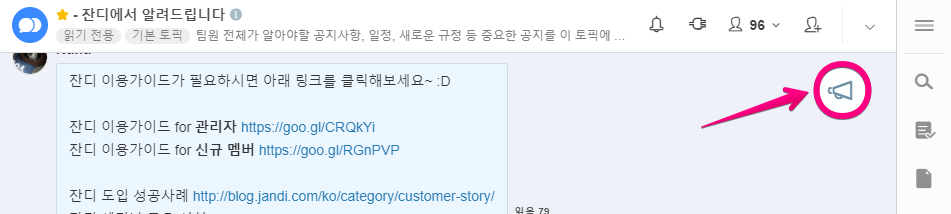 토픽에 참여한 멤버들이 모두 알아야 하는 ‘공지사항’을 간편하게 등록하는 방법을 알려드립니다.