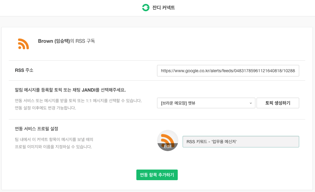Step 2 : 잔디 커넥트 RSS 항목 추가하기