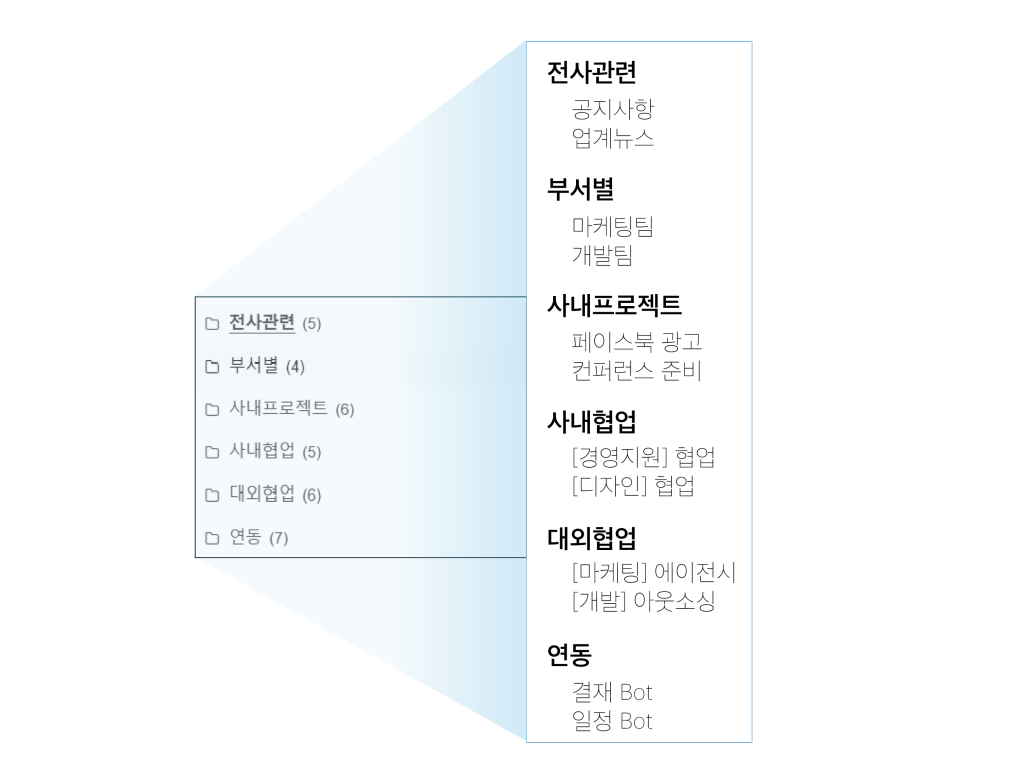회사 내 중요한 업무는 주제별, 팀별로 토픽을 만드세요.