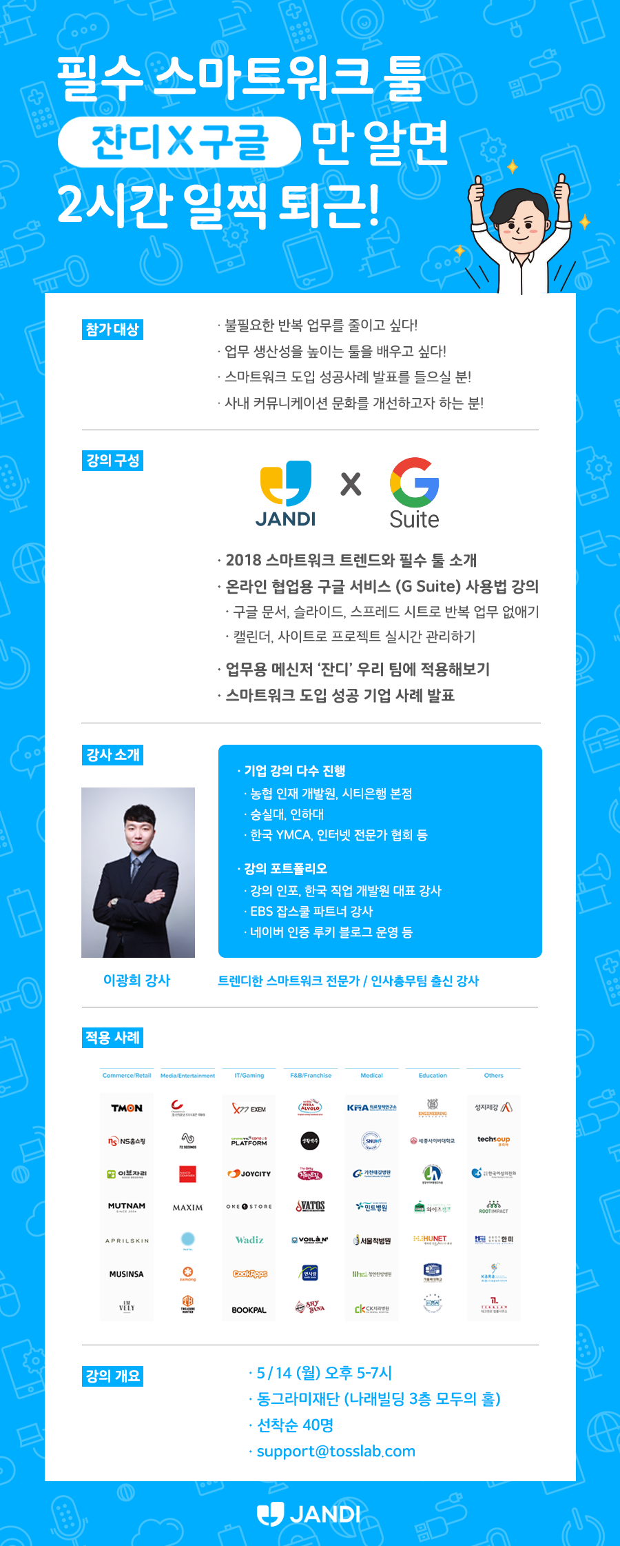 [세미나] 구글X잔디 200% 활용법(5/14, 동그라미 재단) 게시일: 2018. 05. 04 Share 🕑 리딩타임: < 1 분 [신청 링크] 포스트 뷰: 1,873 JANDIjandi seminarSaaSseminarStartup Share