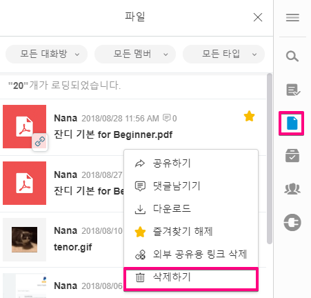 많은 분들이 전체 메시지와 파일을 삭제하는 방법을 요청하시거나 관리자가 지울 수 있는지 궁금해하셨는데요!