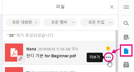 - 메시지/파일은 작성자 본은 또는 팀 관리자가 삭제할 수 있습니다.