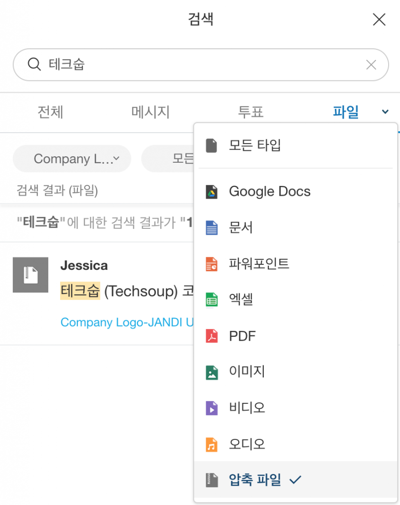 파일 형식별 검색을 추천하고 싶어요. 이메일은 검색어 기준으로 검색하기 때문에 비슷한 메일 스레드를 다 읽어봐야 하지만 잔디는 파일명과 더불어 pdf, zip, img, hwp 등 파일 형식을 지정해놓고 검색할 수 있으니 검색 속도가 훨씬 빨라졌어요.