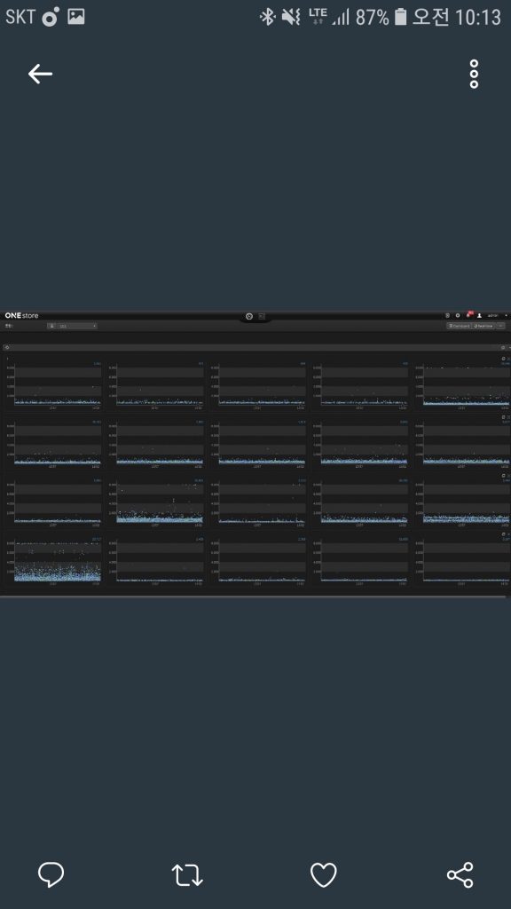 원스토어 서비스의 안정적인 운영을 위해, 특히 장애 감지 및 모니터링 용도로 제니퍼를 활용 중 입니다. 저의 JCC 스마트비법은 제니퍼를 잔디에 연동해 서비스 상태를 실시간으로 모니터링하는 시스템을 만들었다는 것입니다.