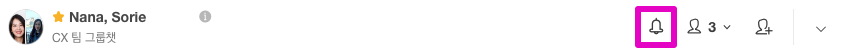 알림을 끈 대화방은 이름 옆에 꺼진 종 모양의 아이콘으로 알림 설정 내용이 표시됩니다.