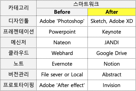 스마트워크를 하기 위해서는 어떤 도구가 나에게 맞는지 파악하는 것부터 시작이라고 생각합니다.