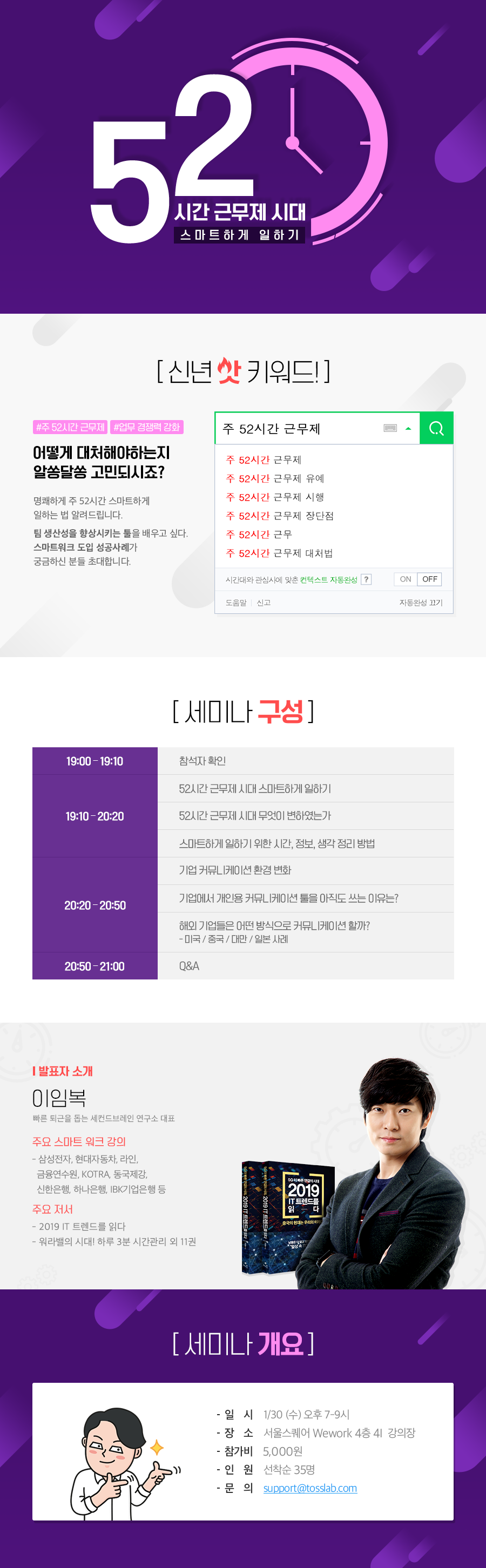 [세미나] 52시간 근무제 시대의 스마트워크 게시일: 2019. 01. 09 Share 🕑 리딩타임: < 1 분 [ 신청하기 ] 포스트 뷰: 3,785 52시간기업용 메신저스마트워크인터뷰잔디 Share
