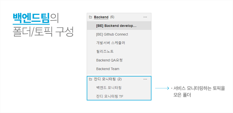 - Backend 팀과 관련된 토픽을 모아둔 폴더, 모니터링 관련 폴더