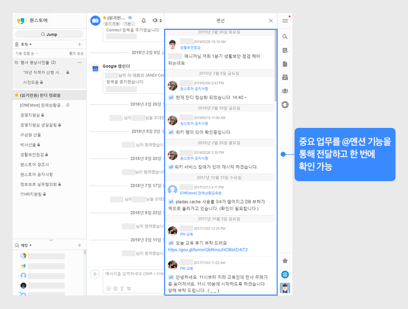 합작 후 원스토어에는 네이트온, 라인, 카톡, 슬랙, 메일 등 각각 역할을 달리한 다양한 커뮤니케이션 툴들이 산재해 있었습니다.
