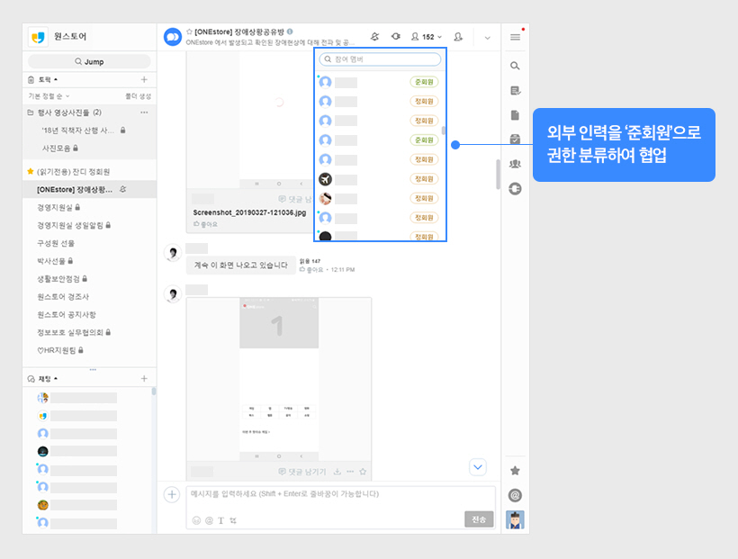 6. 준회원: 외부 인력과도 협업할 때 다른 커뮤니케이션 채널을 사용할 필요 없이 잔디의 준회원으로 초대하면 훨씬 빠르게 업무를 진행시킬 수 있습니다. 또한 보안 이슈도 한번에 해결할 수 있어서 일석이조에요.
