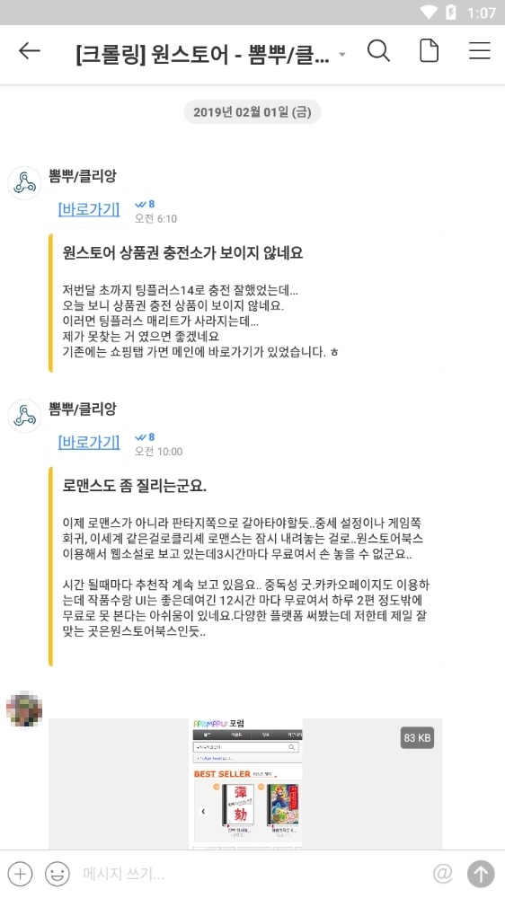 고객센터로 접수된 문의나 웹사이트에 원스토어 관련 포스팅이 게재될 경우 자동으로 잔디에 관련 정보가 공유됩니다. 이를 통해 고객 문의를 빠르게 처리하게 되었으며 서비스의 품질도 한 단계 더 높이고자 합니다.