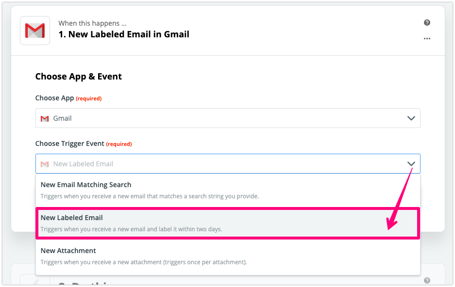 4-3) Trigger Event는 New Labeled Email 로 새로운 라벨이 붙은 이메일이 들어올 때마다 잔디에서 알림 받기로 선택할게요.
