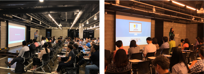 협업에 꼭 필요한 4가지 노션, 지스위트, 스마트시트, 잔디(JANDI)로 이루어진 협업툴 대전은 160명이나 되는 엄청난 인원이 참여해 성황리에 종료되었습니다. 바쁘신 와중에 참여해주신 참가자분들께 감사드립니다. 다음엔 더 좋은 세미나로 만나 뵙겠습니다.