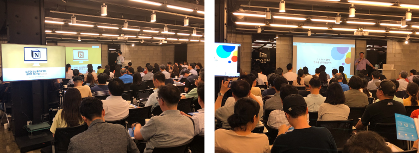 좌: 노션 한국 사용자 모임장 전시진, 우: 베스핀 글로벌 구글 사업본부 정지찬