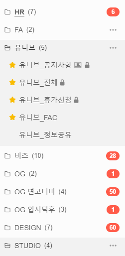 특히 디자인 부서는 타 부서와 협업할 일이 많습니다. 채용 포스터 이미지 요청, 영상 썸네일 제작 등 동시에 할 일이 많습니다. 그렇기에 ‘디자인_협업내용’으로 토픽 이름을 정해서 각 부서에서 요청하는 디자인 작업이 섞이지 않도록 대화방을 구성했습니다.