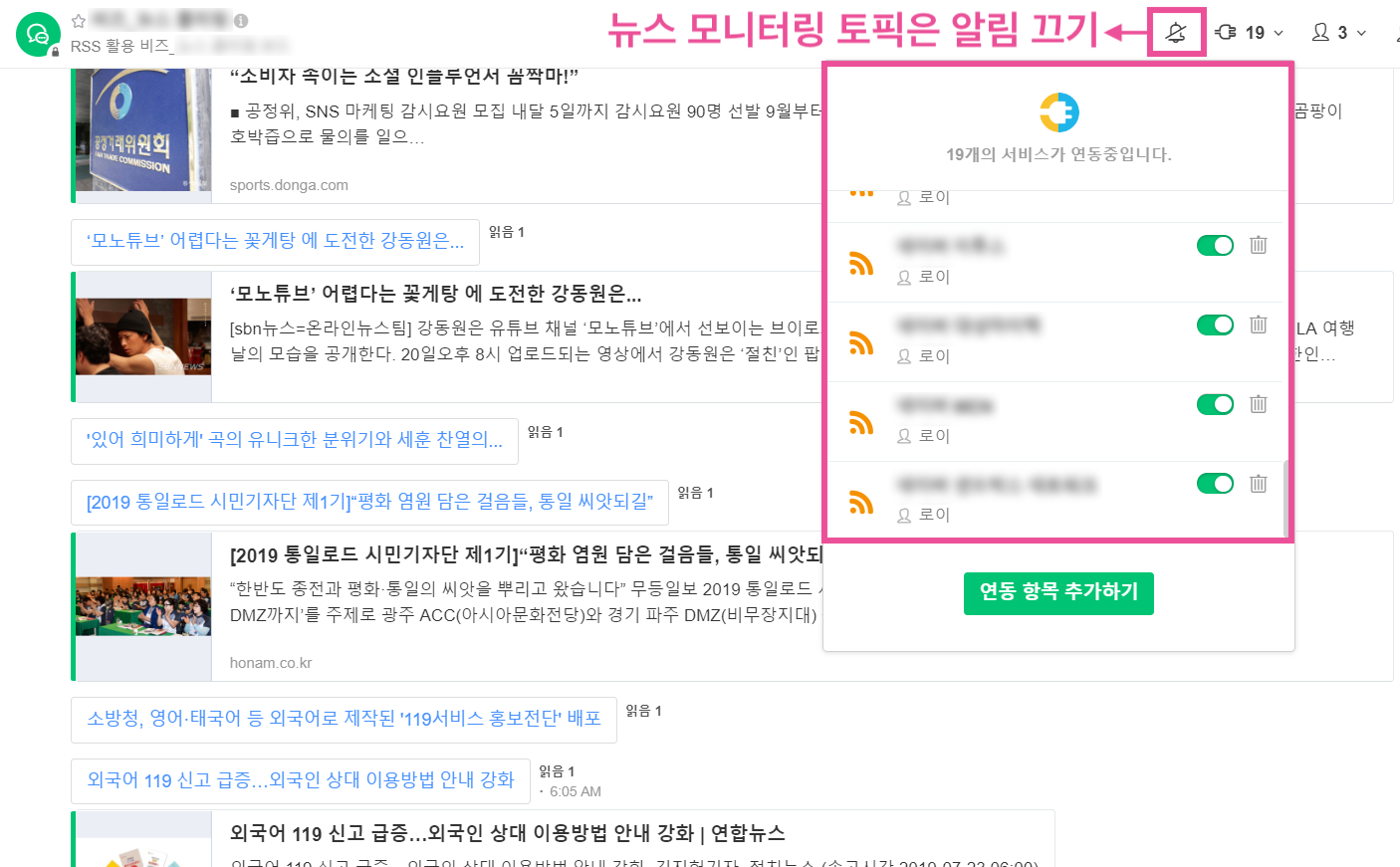 3. RSS 연동으로 요즘 핫한 크리에이터 뉴스를 모니터링합니다.