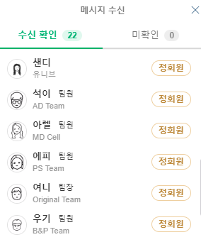 < 멤버들이 읽었는지 확인할 수 있는 메시지 수신 확인 기능 >