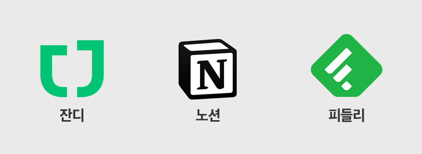 업무가 딱 나뉘어 있거나 하지는 않고 그냥 필요할 때마다 서로 소통하고 요청하는 식이이에요. 협업툴을 많이 활용하고 있는 편인데, 먼저 내부적인 업무 소통은 모두 잔디(JANDI)에서 하고 있어요. 회의록 같은 업무 기록이나 아카이브에는 노션(Notion)을, 콘텐츠 발굴에는 피들리(Feedly)를 사용 중이죠. 이 밖에 구글 스프레드시트나 어도비 같이 남들이 사용하는 웬만한 툴들도 다 사용하고 있어요.