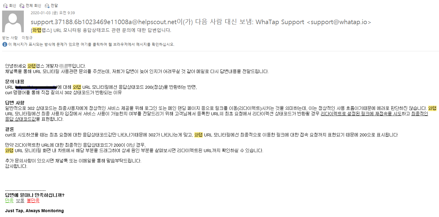 무료 사용자의 질문에도 친절하게 대답해주는 와탭 팀 ?