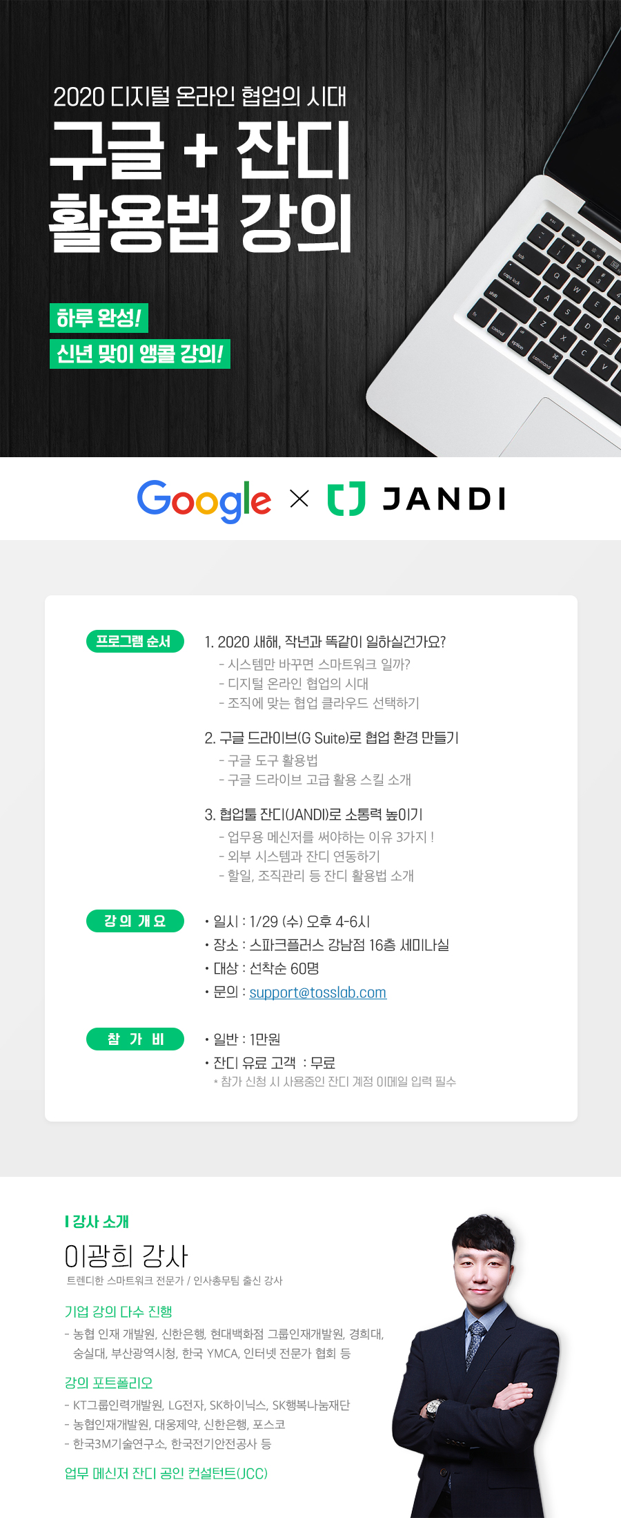 [앵콜강의] 구글 + 잔디 활용법 강의 게시일: 2020. 01. 16 Share 🕑 리딩타임: < 1 분 [ 신청하기 ] 강의 내용에서 소개하는 잔디(JANDI)와 구글 드라이브 도입 (G Suite) 상담 부스도 강의 후 운영될 예정이니 궁금한 점은 바로 현장에서 물어봐주세요 ! [ 신청하기 ] 포스트 뷰: 4,714 G Suite구글 드라이브기업용 메신저스마트워크스타트업 Share