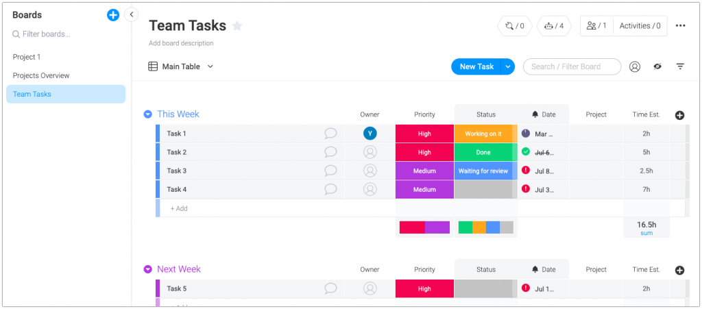 - Task (Pulse) : 보드 내부에 세부 프로젝트 하나하나의 할일