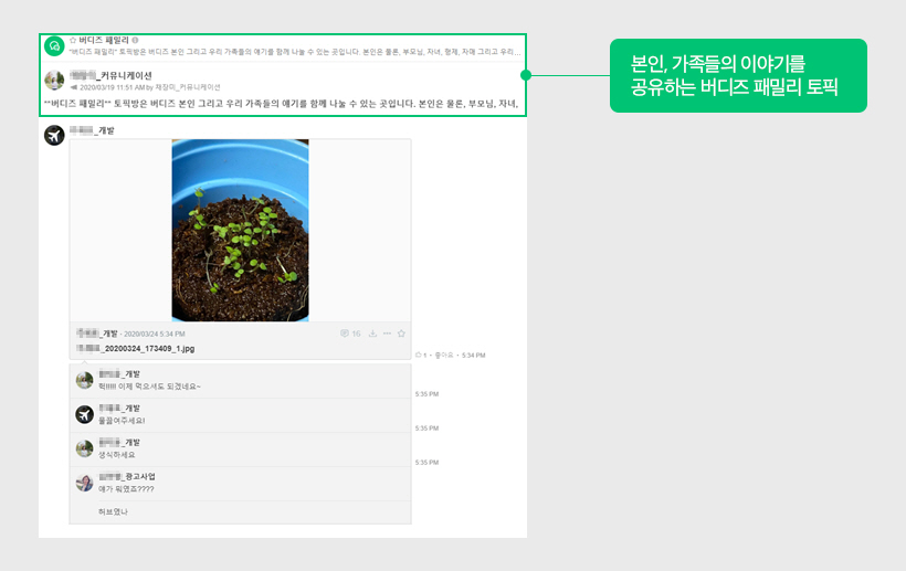 버디즈 패밀리 토픽방은 본인 그리고 우리 가족들의 이야기를 나눌 수 있는 곳입니다. 물론 다음과 같이 식물 가족도 포함됩니다:)