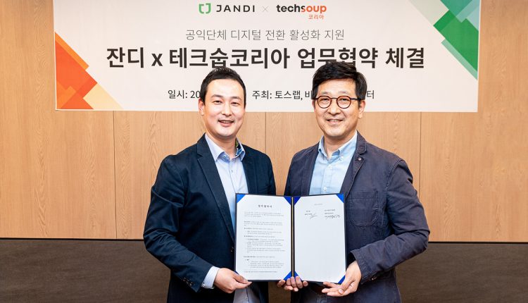 토스랩(대표 김대현)이 (사)비영리IT지원센터(공동이사장 김석경)가 운영하는 테크숩코리아와의 업무 협약식을 진행했다고 29일 밝혔다. 이번 협약은 공익 단체에 업무용 협업툴 잔디 도입을 무료로 지원해 디지털 전환을 돕는 기부 프로그램 참여 기간 연장 및 협력 강화를 취지로 이루어졌다.