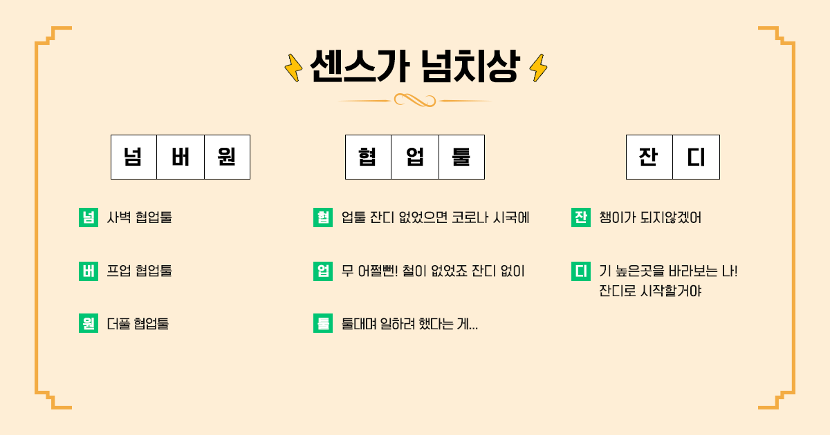 지난 달 토스랩 잔디 공식 페이스북 페이지에서 제시어 넘버원 | 협업툴 | 잔디로 N행시 이벤트를 진행했습니다. 잔디 서비스 특징을 잘 녹여낸 N행시부터 센스 넘치는 N행시까지 100+분께서 댓글로 참여해 주셨습니다🎉. 그 중 잔디의 선택을 받으신 수상자 20분께 감사의 마음을 담아 치킨과 잔디 버티컬 충전기를 전달 드릴 예정입니다. N행시 이벤트에 참여해 주신 모든분께 다시 한번 감사드립니다😊