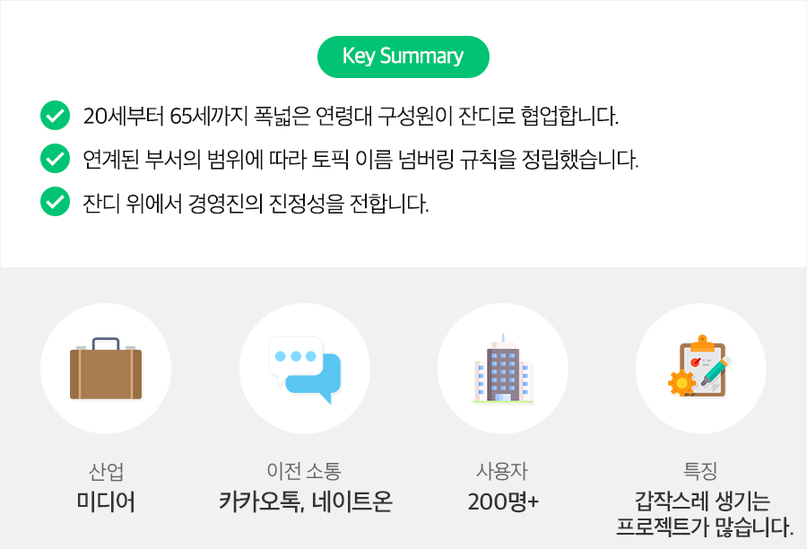 새로운 프로젝트가 많은 기업과 구성원 연령대가 폭넓은 기업에 추천합니다.