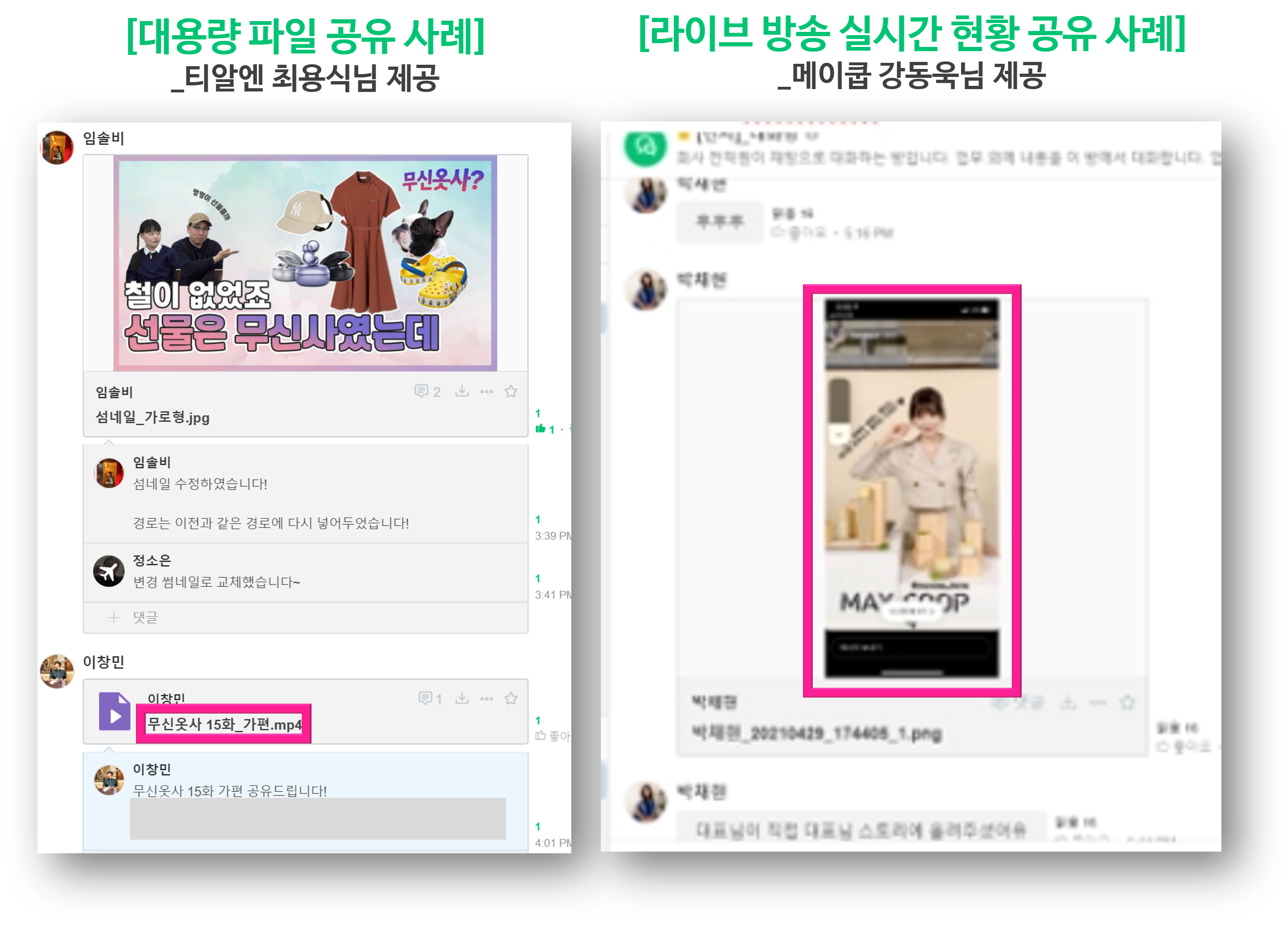 외부에서 진행되는 라이브 방송, 제품 촬영 등의 업무 진행 상황을 잔디에서 실시간으로 공유했다는 잔디빨 사례도 보내주셨습니다🤗