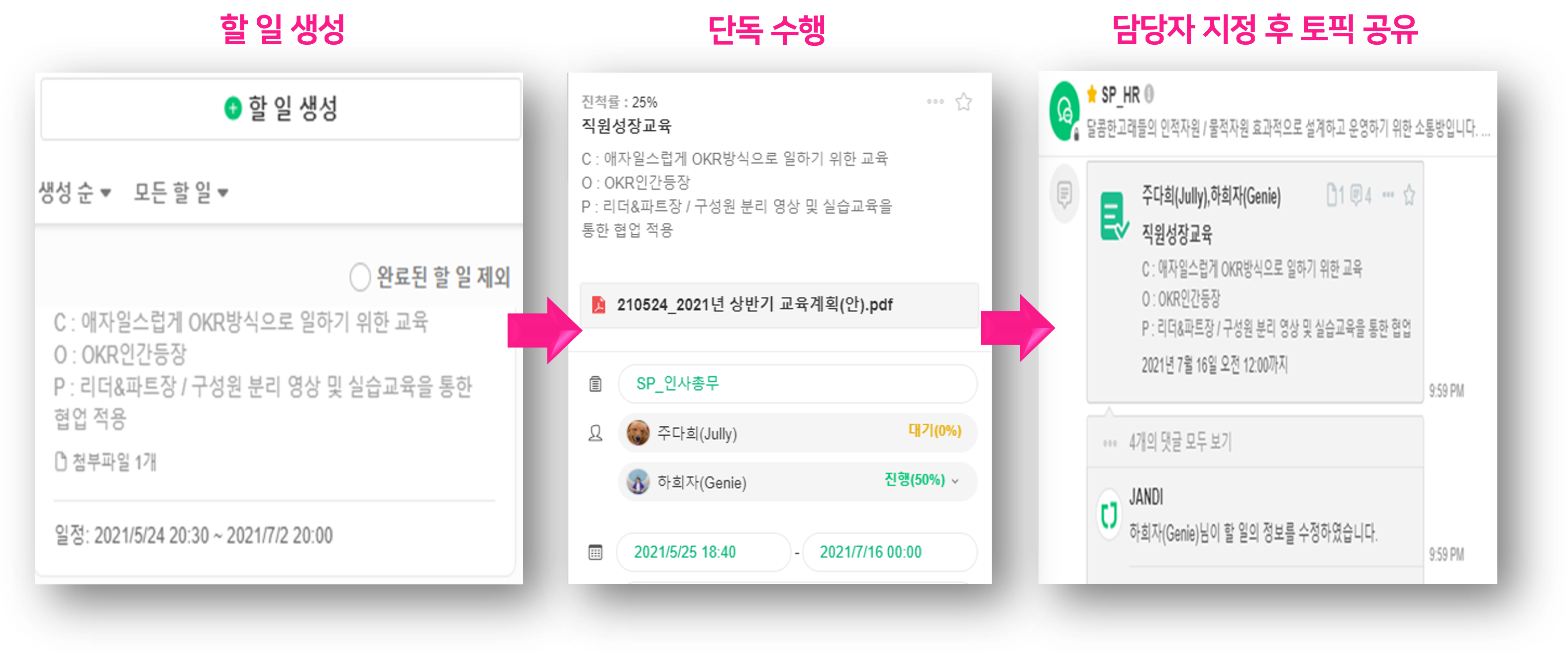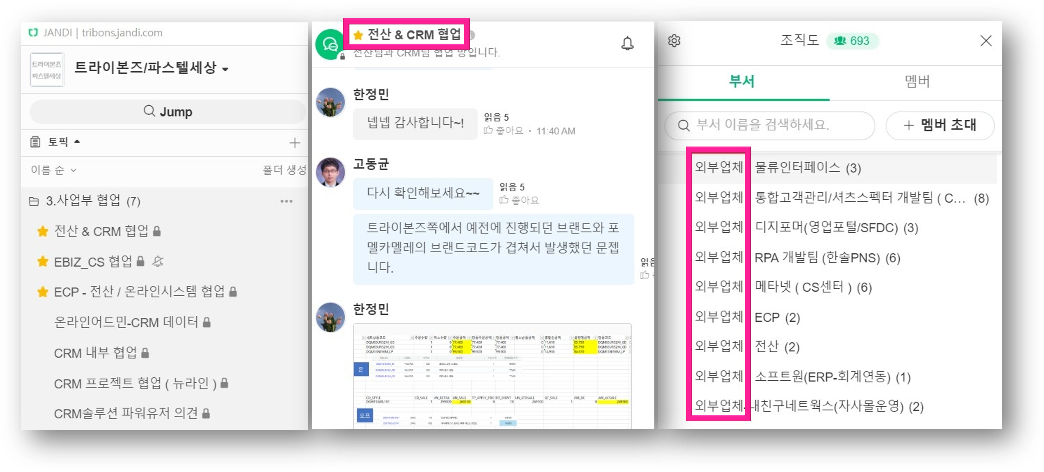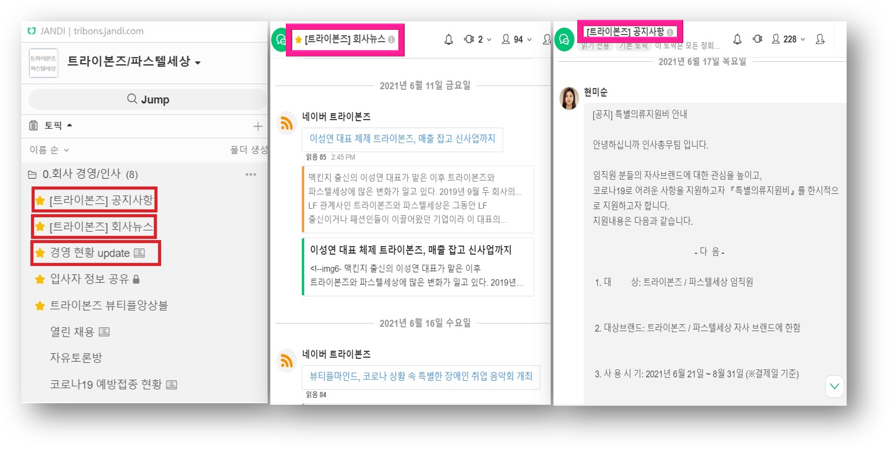 ✅ 유관부서 별로 자유롭게 토픽을 생성해 업무를 진행하여 협업의 효율성이 높아졌습니다.