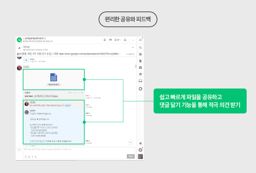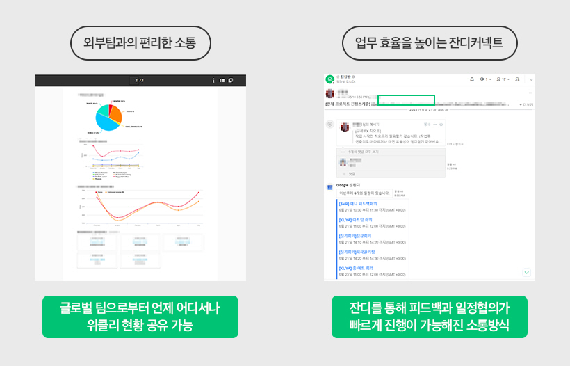 키링 스튜디오가 규모가 커지면서 함께 협업해야 일이 많아지고 있어 원활한 소통이 더욱 중요해졌습니다. 이전에는 이메일을 통해 업무 파일을 주고받으며 피드백을 전달받고 했습니다. 구성원 다수의 피드백이 필요할 때에는 이메일과 카카오톡을 산발적으로 사용하다 보면 다른 구성원의 피드백을 놓칠 때도 있고, 이전 이메일을 찾을 때에도 시간 소비와 함께 스트레스를 받기도 했습니다. 잔디를 도입하면서 이 부분이 개선됨에 따라 업무효율이 높아졌습니다. 작업 중간 과정부터 최종 단계에 이르기까지의 파일을 구성원 모두에게 빠르게 공유, 그리고 검색 기능을 통해 원하는 것을 빨리 찾을 수 있을 뿐만 아니라, 공유한 파일에 댓글을 담으로써 보다 많은 피드백을 단기간에 받을 수 있어 작업 퀄리티도 같은 시간에 비해 더 높아졌습니다. 잔디에서 협업하기에 가능하다고 키링 모두가 생각합니다.