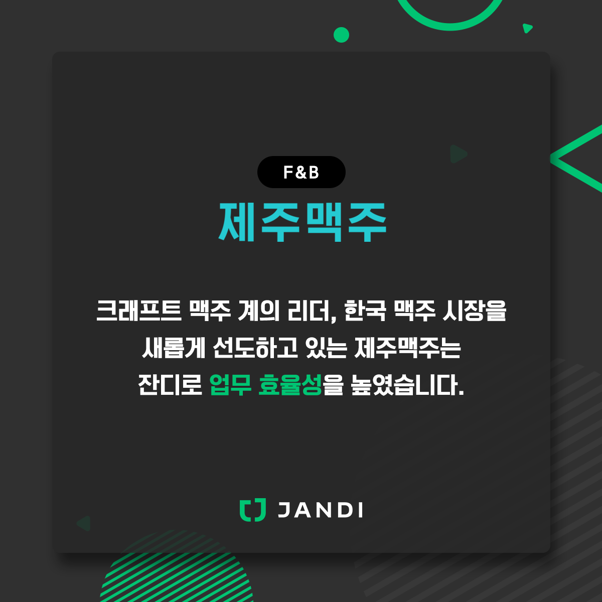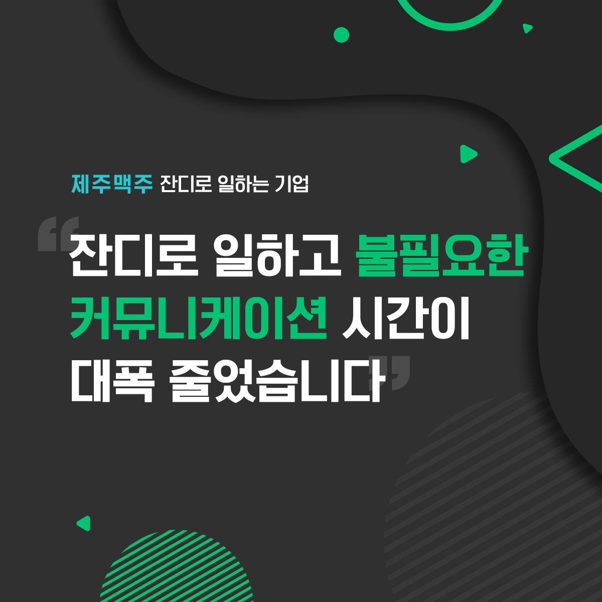 크래프트 맥주계의 리더, 한국 맥주 시장을 새롭게 선도하는 제주맥주도 잔디로 일하고 있습니다. 제주맥주는 국내 최초 글로벌 그래프트 맥주 회사로 업계 최초로 중소기업벤처부가 ‘예비 유니콘’으로 선정한 기업입니다.